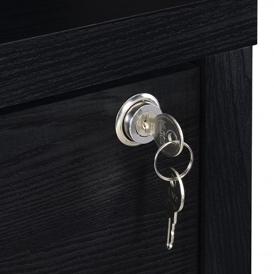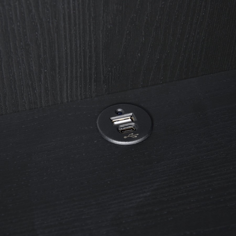 This 3-piece bedroom set includes a bookcase headboard and two coordinating nightstands designed for practical bedroom storage. Open cubbies on the headboard and hutches keep books and essentials within reach, while lockable top drawers add secure storage. Each nightstand features built-in USB-A and USB-C charging ports. Made from engineered wood and finished in a scratch-resistant laminate veneer, the set delivers durability and everyday convenience across a range of room styles.