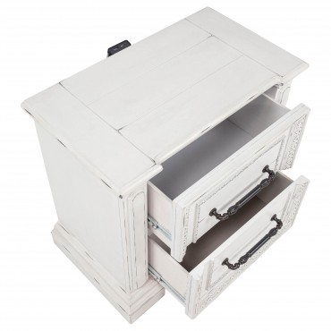 Steeped in elegance and shaped by thoughtful detail, this bedroom set captures the charm of timeless design. Crown moldings and carved accents highlight each piece, softened by a vintage white finish that whispers of age and grace. Hidden features like dual reading lights and jewelry trays offer modern convenience, while traditional construction ensures lasting durability. Crafted from poplar and engineered wood, the set brings classic character to restful spaces.