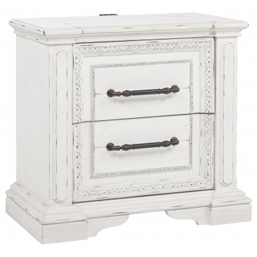 Steeped in elegance and shaped by thoughtful detail, this bedroom set captures the charm of timeless design. Crown moldings and carved accents highlight each piece, softened by a vintage white finish that whispers of age and grace. Hidden features like dual reading lights and jewelry trays offer modern convenience, while traditional construction ensures lasting durability. Crafted from poplar and engineered wood, the set brings classic character to restful spaces.