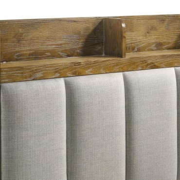Bringing together the warmth of rustic woodgrain and the sleekness of modern design, this bedroom set offers a harmonious blend of style and function. Crafted from solid rubberwood with embossed oak grain in a weathered medium oak finish, each piece features thoughtful touches, from faux marble tops to led lighting and built-in USB charging. Upholstered accents and open shelving enhance both comfort and convenience, making this set a natural centerpiece for contemporary living.