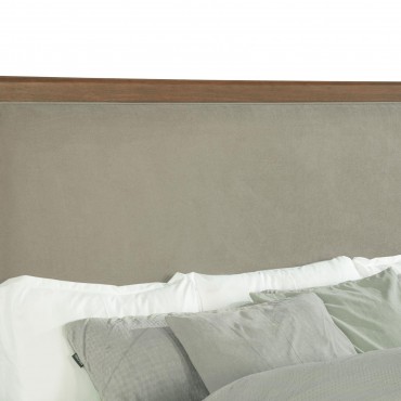 Upgrade your bedroom ambiance with the fresh, clean-lined style of this modern bedroom set. Designed with a walnut wood finish, the set centers on a streamlined bed that boasts an upholstered headboard with rounded corners. Beige upholstery and plush padding deliver understated style and impeccable comfort for evening lounging. The set includes storage pieces with ample drawer space for clothing and linens, and pieces are complete with both cedar, and felt lining in top drawers to protect valuables and delicates. Fingertip pulls add a touch of dimensionality to the front of each piece, while engineered wood construction delivers reliable durability.