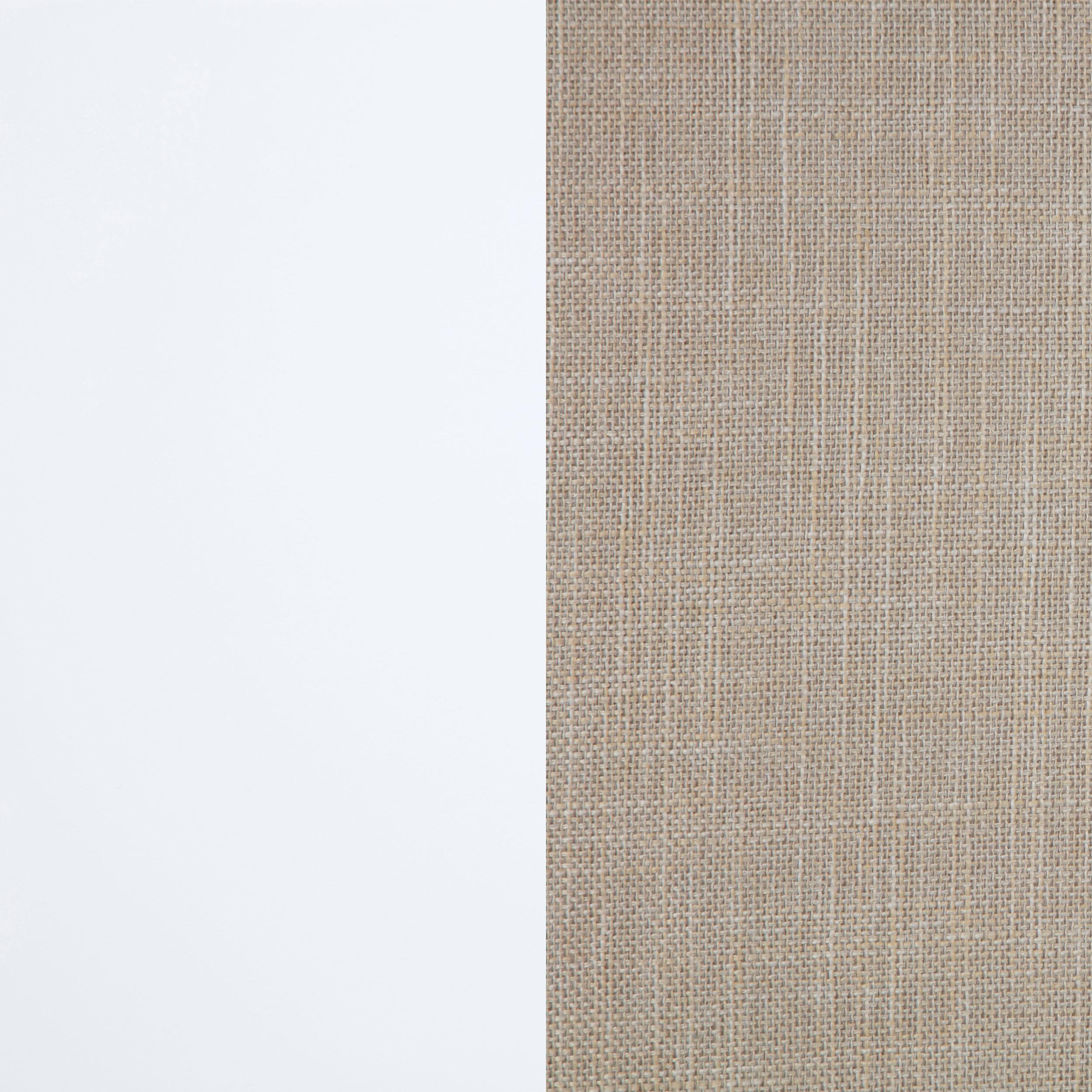 Textured rattan drawer fronts create a fresh, modern coastal aesthetic for this contemporary bedroom set. Offering ample storage and a clean look and feel, the set centers on a wooden bed with a gently flared, upholstered headboard with plush foam padding for easy comfort. The set includes a bright white finish, offering easy contrast to the rattan and linen-colored fabric upholstery that creates cool ambiance. Top drawers in the set include black felt lining and drawers are dotted with round metal knobs. The dresser includes a framed mirror while the nightstand offers both a drawer and a shelf for easy storage and decor.