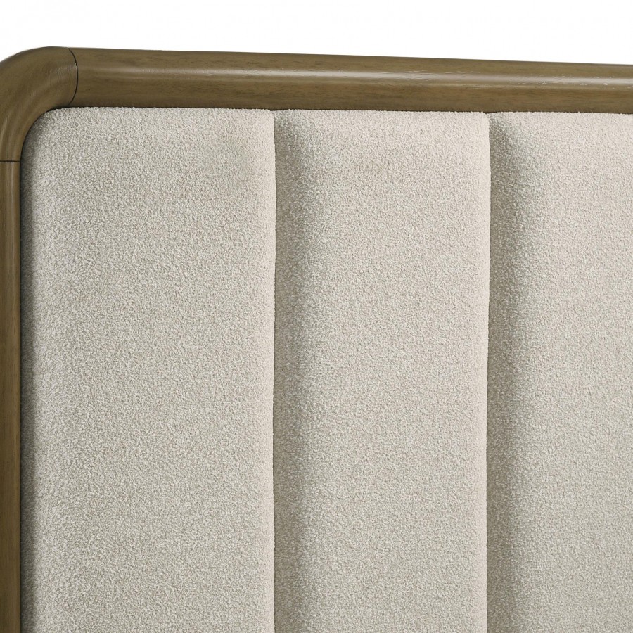Transform your bedroom into a stylish and serene retreat with this modern bedroom set. The warm nutmeg wood finish across all pieces creates a cohesive and inviting atmosphere, while the soft, beige upholstered headboard on the bed adds a touch of luxury. The case pieces feature smooth metal extension glides for effortless functionality, and the rounded corners on all pieces contribute to a sleek, contemporary look. Matte nickel hardware provides a refined accent that complements the overall aesthetic. Crafted from solid rubberwood and engineered wood, this set combines timeless design with everyday practicality.