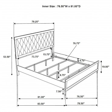 Reimagine your bedroom retreat with the crisp, clean appeal of a modern four-piece bedroom set. Its clean, precise style is emphasized with sleek silhouettes and a bright white finish. The set centers on a chic bed with a tall headboard and low footboard, offering fresh style with geometric tufting in dark gray padded upholstery. Black finish legs complete the bed and bring cohesive style to the set, matching bases and hardware on the dresser and nightstand. The dresser offers plenty of storage and includes a framed mirror on top, adding bright reflectivity to your bedroom ensemble.