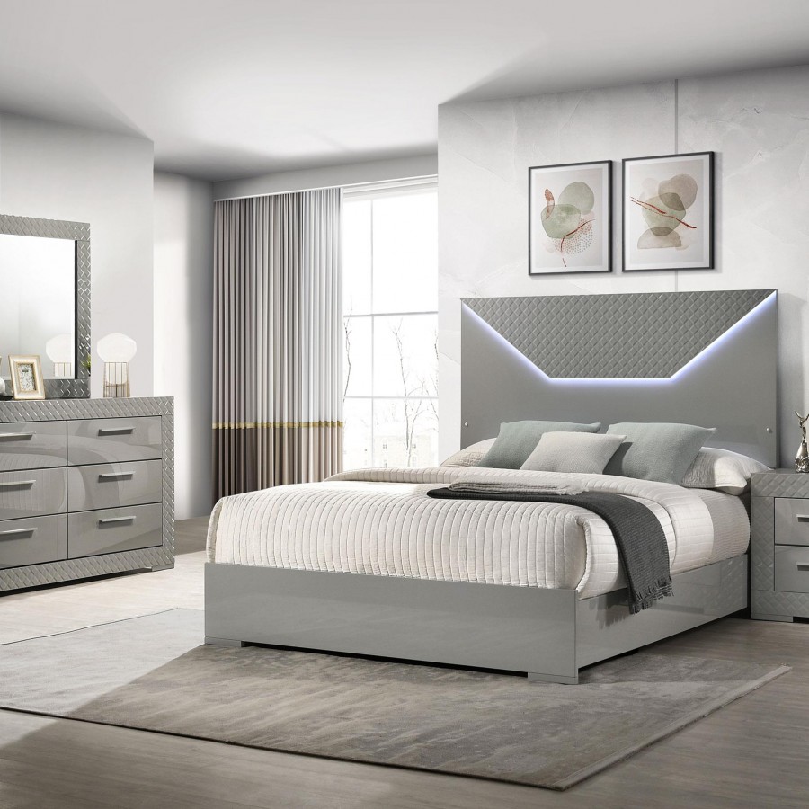 Ives 4-piece Queen Bedroom Set Grey High Gloss