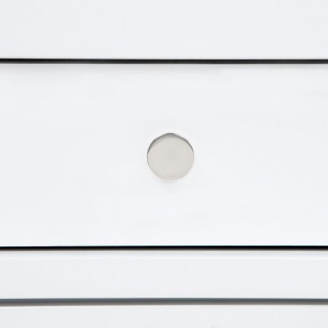 This bedroom set combines soft curvature and linear polish in a clean modern silhouette. Each piece features elongated brushed nickel pulls and subtle vertical tube accents that frame smooth white surfaces. The bed softens the look with a light grey upholstered headboard and footboard, adding contrast and comfort. Built from solid rubberwood, engineered wood, and laminate veneer, this set balances elegance with practical everyday function.