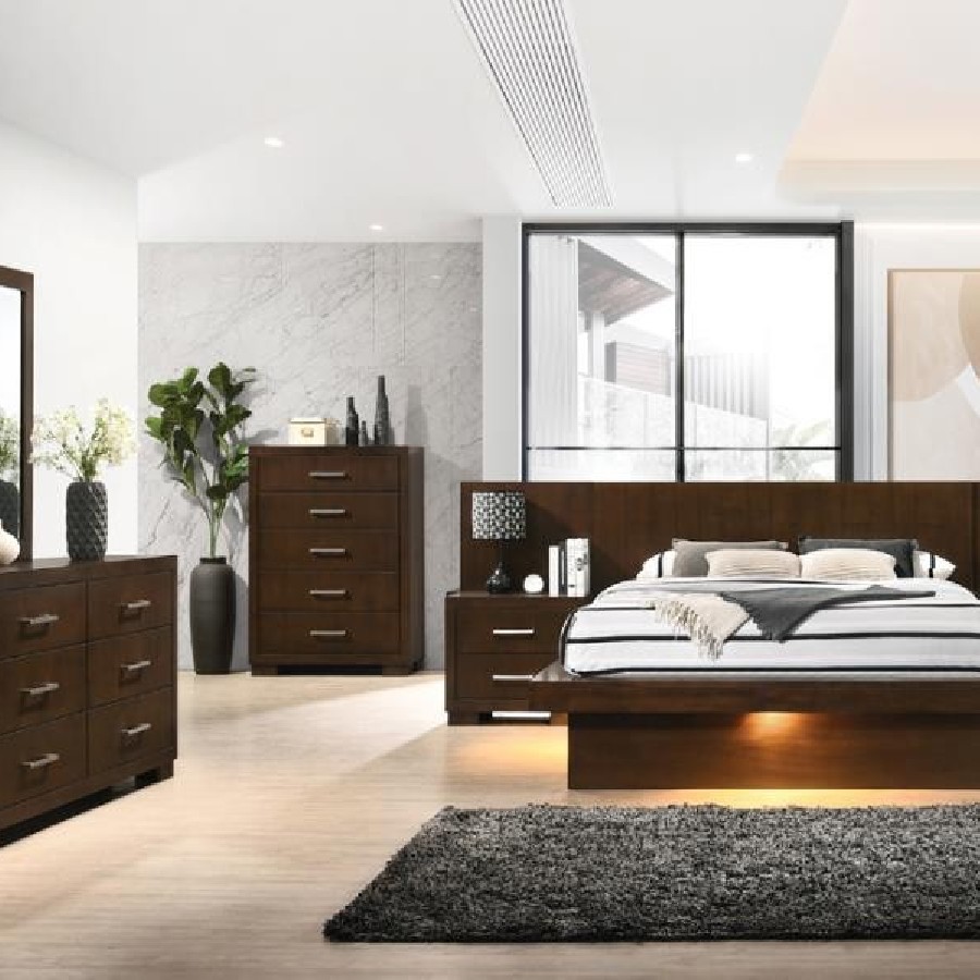 Jessica 4-piece Eastern King LED Bedroom Set Cappuccino