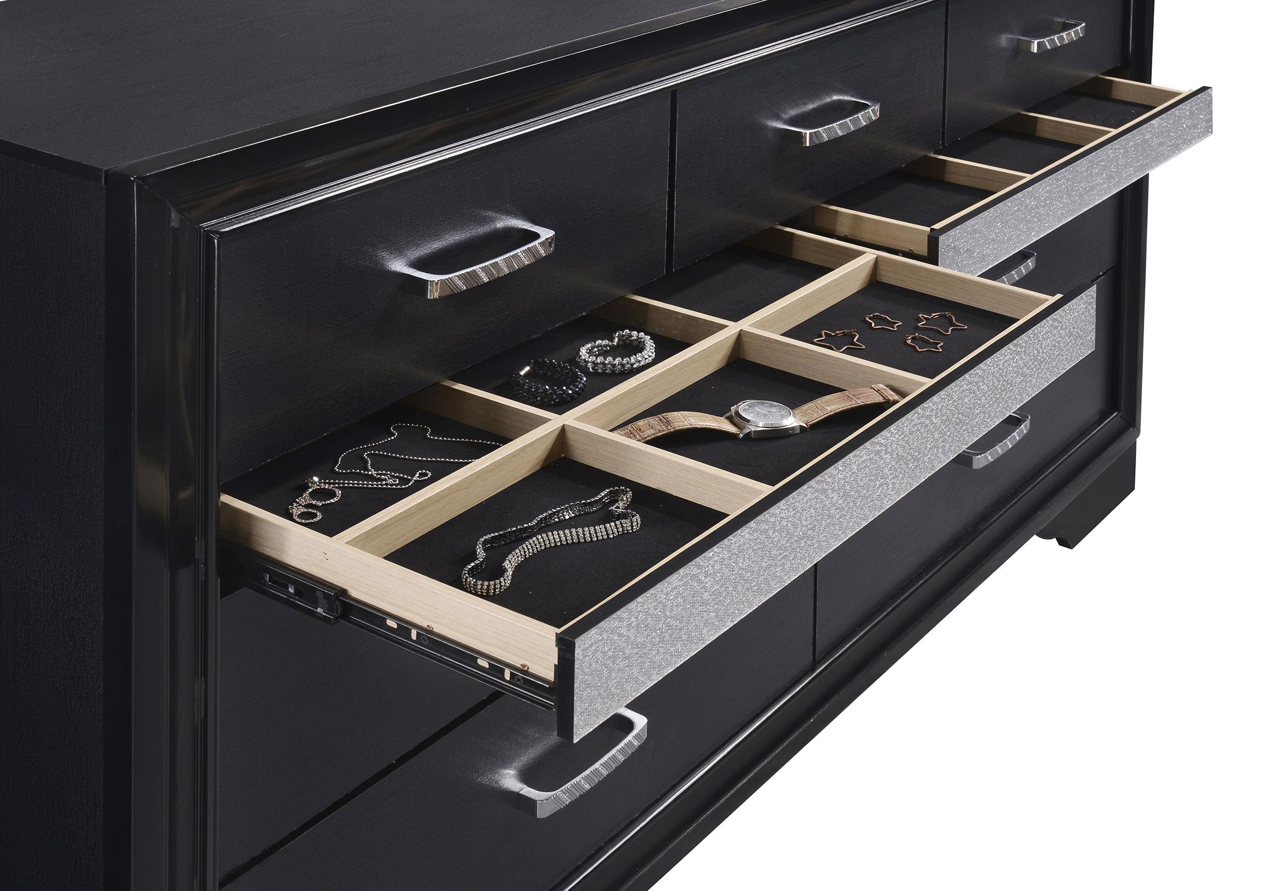Brighten up your bedroom with this charming, four-piece set. With a bed, dresser, mirror, and nightstand all included, it instantly completes your space. A striking, one-color finish gives it a fresh, updated look. Hidden jewelry drawers in each case piece are a pleasingly convenient touch. The drawers are constructed with full extension glides for versatile ease of use.