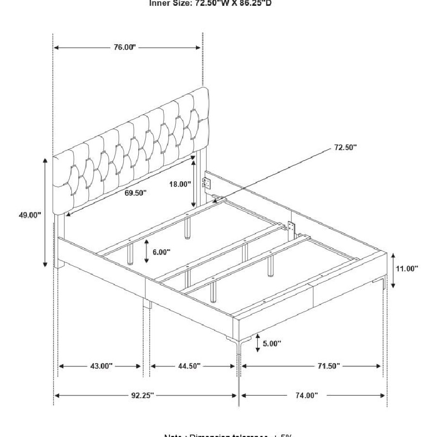 Instantly elevate the look of your bedroom oasis with this modern glam bedroom set. Chic, warm, gold elements lend a luxe accent to the upholstered platform bed and accompanying pieces. The bright, white finish sets the stage and offers a clean, contemporary aesthetic with a light and airy expression. The lovely headboard takes your breath away with its diamond tufted design and striking bar button details. Matching the warm, golden buttons are gold bracket legs, adding elevation to the bed and a retro-inspired look and feel.