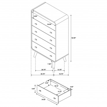 Transform your bedroom into the ultimate retreat with this mid-century modern bedroom set. Expertly crafted from rubberwood, engineered wood, and ash veneer, the set includes a bed, nightstand, dresser, mirror, and optional chest for a cohesive look. Rounded edges, tapered legs, and square tufting lend a retro-inspired flair, while felt-lined top drawers in case pieces and dual USB ports in nightstand add practical convenience. This collection combines style and functionality for a truly luxurious bedroom experience.