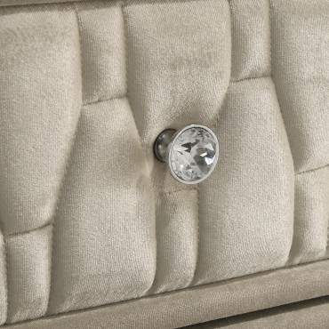 This bedroom set transforms everyday rest into a radiant retreat, blending plush textures with ambient light. Upholstered in ivory and camel velvet, each piece is trimmed in LED lighting for a soft glow. The dresser features a built-in flame visualizer with a clear tempered glass top and wireless remote. Paired with a tufted LED wingback bed, solid rubberwood legs nightstand with dual USB ports, and a light-framed mirror, the collection balances comfort with luminous elegance.