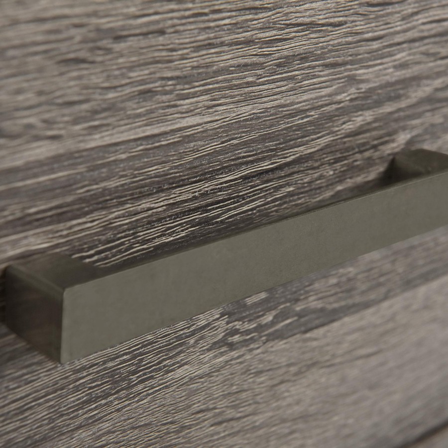 Create your ideal bedroom ambiance with the fresh, casual style of this transitional bedroom set. It features engineered wood construction with durable laminate surfaces, creating a stylish look with its brown oak wood grain finish. The set is clean lined, delivering a tall, squared headboard with foam padding and tan upholstery, creating the perfect place for lounging and reclining. The bed is complete with a low footboard and rails, offering a complete look that remains open and airy, great in small and large bedrooms alike. Storage pieces add ample drawer space and roomy tops, perfect for creating organization and offering a place for a personal touch of decor.