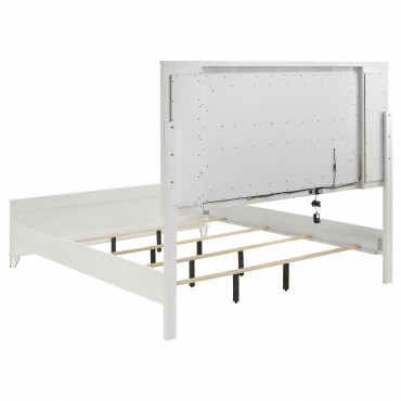 Create a cohesive and luxurious look in your bedroom with this bedroom set. Featuring a bed, nightstand, dresser, mirror, and optional chest, each piece is designed with a modern Italian aesthetic. The white finish, picture framed recessed panels, and embossed herringbone graphic patterns exude sophistication, while the mirror framing, acrylic legs, and polished chrome metal hardware add a touch of opulence. This set offers both style and functionality, making it the perfect choice for your elegant bedroom.