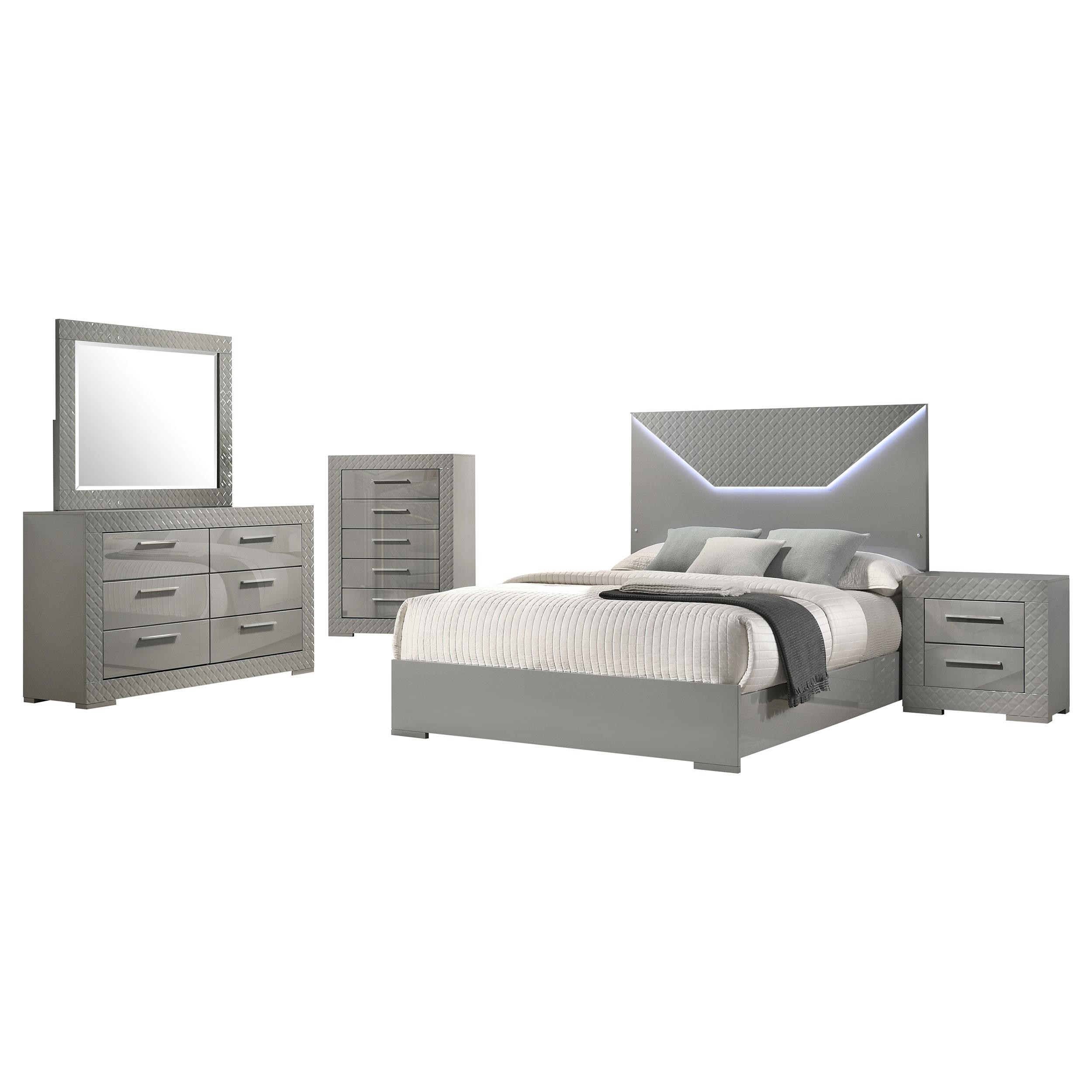 Ives 5-piece Queen Bedroom Set Grey High Gloss