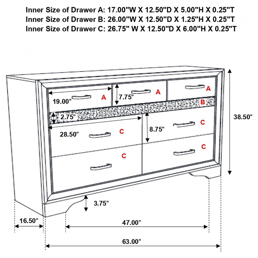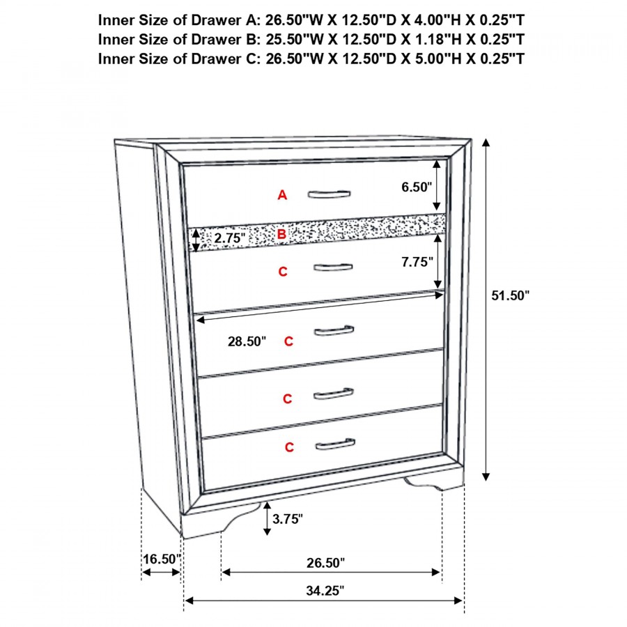 Create the bedroom of your dreams with this elegant, five-piece furniture set. Complete with a bed, nightstand, dresser, mirror and chest, it has all you need to complete your space. Each case piece includes a hidden jewelry drawer to keep valuables safe and secure. The two additional drawers built into the bed are ideal for storing shoes, bedding, clothing, and more. Each piece in this set is finished in a solid color for an appealing, monochromatic look.