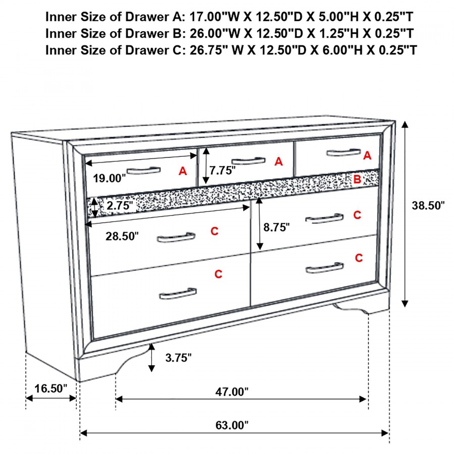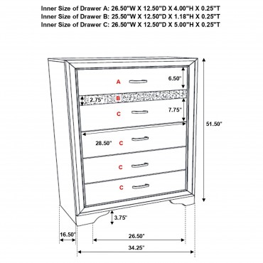 Create the bedroom of your dreams with this elegant, five-piece furniture set. Complete with a bed, nightstand, dresser, mirror and chest, it has all you need to complete your space. Each case piece includes a hidden jewelry drawer to keep valuables safe and secure. The two additional drawers built into the bed are ideal for storing shoes, bedding, clothing, and more. Each piece in this set is finished in a solid color for an appealing, monochromatic look.