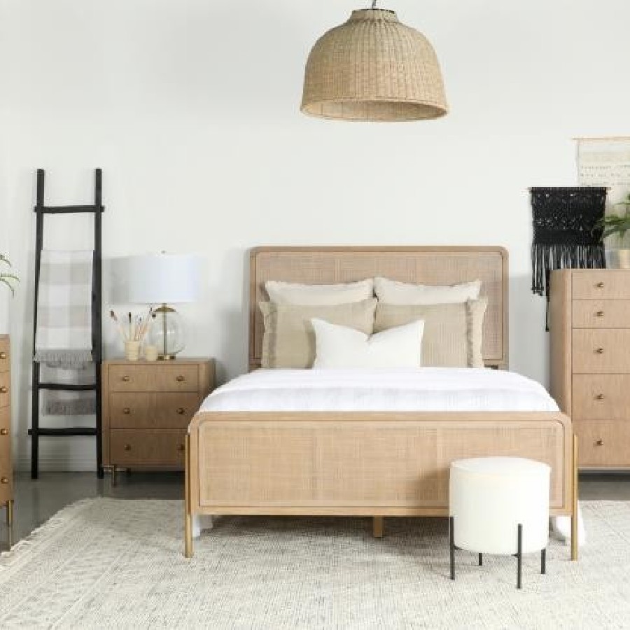 Arini 5-piece Queen Bedroom Set Sand Wash and Natural Cane