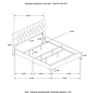 Complete your primary suite with this modern glam bedroom set, designed with a foam padded bed upholstered in soft, black velvet for extra comfort. A smooth, black finish covers the surface of each drawer, creating a chic, bold look. Gold finished hardware including bracket style legs, drawer pulls, and bar shaped buttons along the diamond tufted headboard offer a warm, metallic glimmer and interest. The two-drawer nightstand, six-drawer dresser, and five-drawer chest offer all the garment storage you need. Mount the black framed mirror on the dresser to make the most of the space and create a vanity setup.