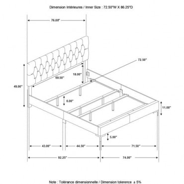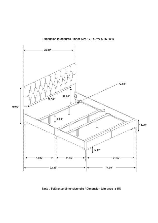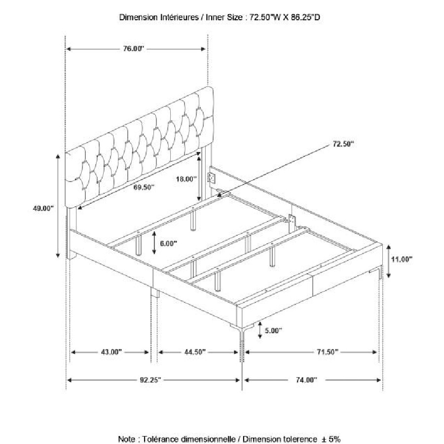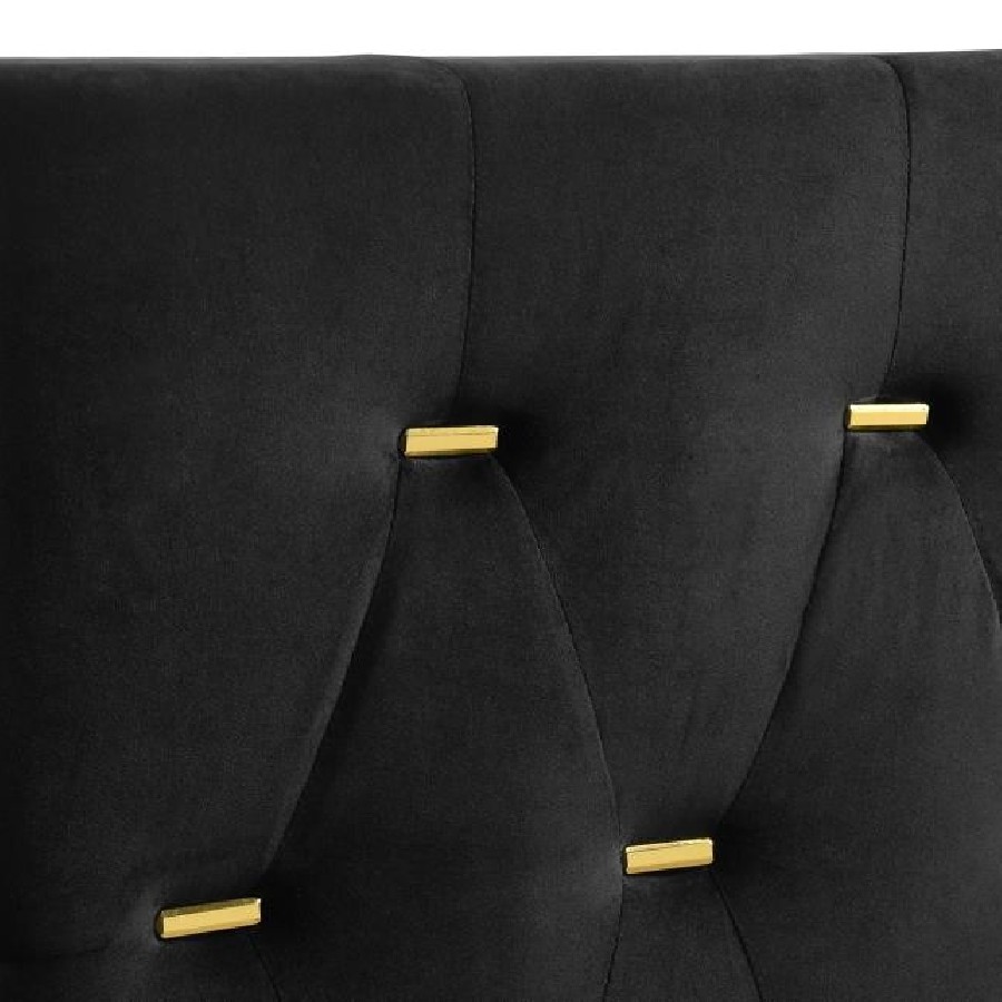 Complete your primary suite with this modern glam bedroom set, designed with a foam padded bed upholstered in soft, black velvet for extra comfort. A smooth, black finish covers the surface of each drawer, creating a chic, bold look. Gold finished hardware including bracket style legs, drawer pulls, and bar shaped buttons along the diamond tufted headboard offer a warm, metallic glimmer and interest. The two-drawer nightstand, six-drawer dresser, and five-drawer chest offer all the garment storage you need. Mount the black framed mirror on the dresser to make the most of the space and create a vanity setup.