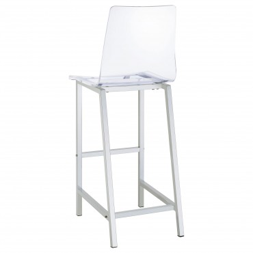 Shift to a futuristic design motif as you entertain in style. An unconventional mix of materials form elegance with simplicity in a five-piece bar set perfect for hosting your happy hours and casual lunches. A rectangular table features a clear glass top over linear metal framing, sparkling and energetic in appearance. Shapely clear acrylic seats perch over metal frames with built-in footrests. Explore a new approach to contemporary living with this chic set.