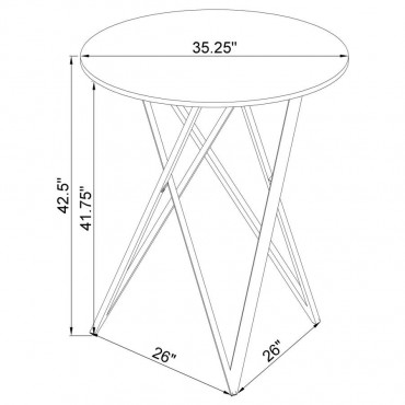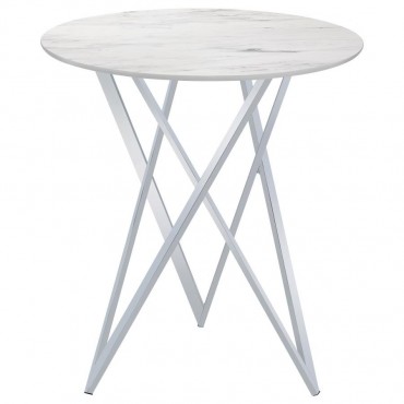 Dress up casual dining areas and entertainment rooms with this sleek modern bar table. Designed with a clean and crisp, round, faux white marble top, this bar height table brings a chic, contemporary meets classic flair to spaces. The striking origami-like sculptural base transform a room, offering an open, airy effect. Made of metal, the tall sharply angled base welcomes you to use it for an open concept floor plan at parties or to host intimate wine tasting nights with friends. Pull up a coordinating bar stool of your choosing to seat up to three comfortably.