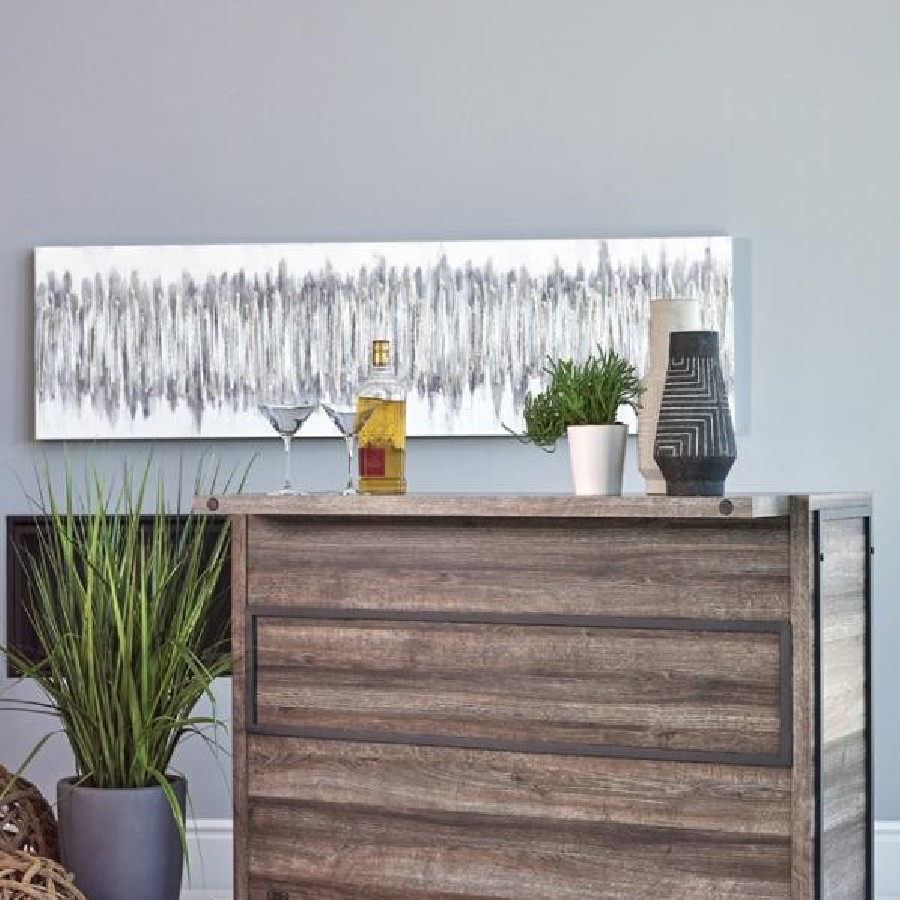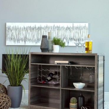 Serve up smile after smile at your next gathering of guests. This handsome, wooden bar unit boasts a bold, rustic design to enliven your space. Five roomy shelves with stemware racks provide plenty of space for your party essentials. A metal footrest is attached to the front, keeping guests comfortable as you show off your mixology skills. Top-quality craftsmanship ensures maximum durability for years of lasting enjoyment.