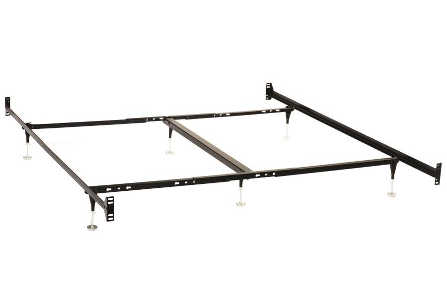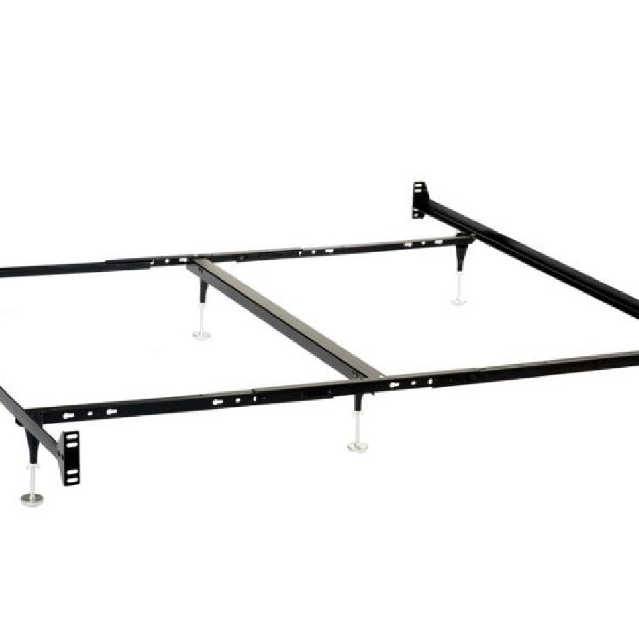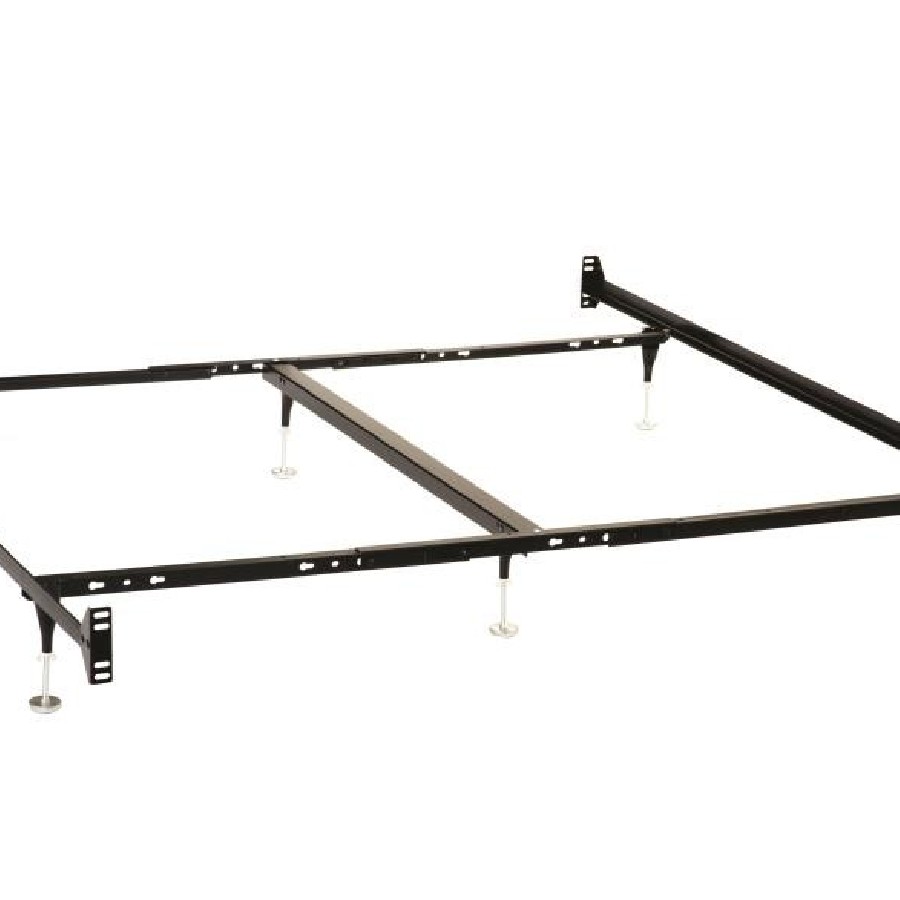 This bed frame provides a sturdy foundation, designed for use with a headboard and footboard. Its bolt-on construction ensures secure positioning, while a reinforced center beam offers reliable support. Adjustable glides on the legs provide stability and easy movement. The black powder-coated finish enhances durability and resists wear. Built for strength and versatility, this frame is available in multiple size configurations, offering a reliable base for various bed setups.