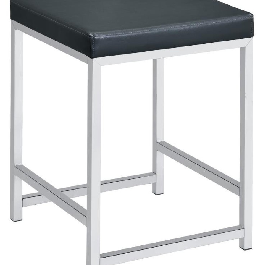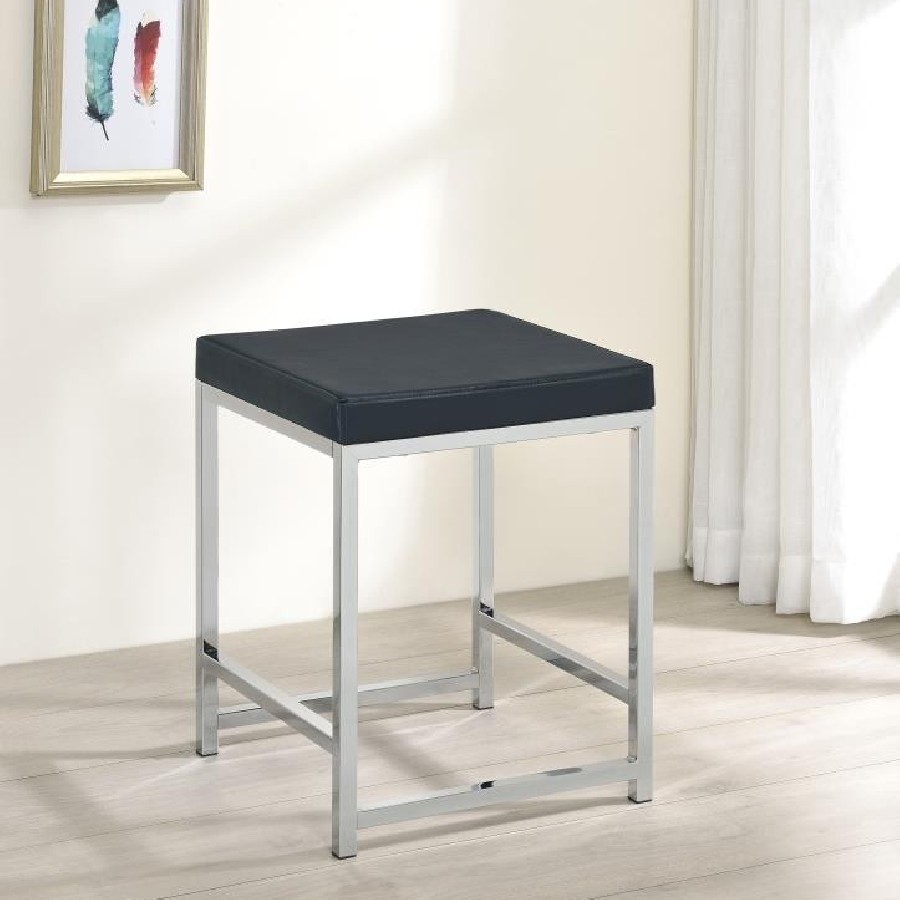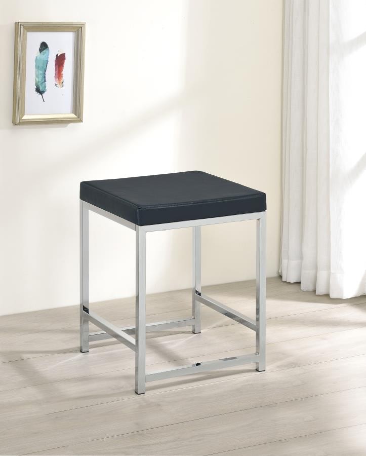 Rest comfortably in this chic contemporary vanity stool as you apply makeup or prepare for the day. Featuring a square shape design and a densely padded, foam-filled cushion , this modern stool provides a spacious for long-lasting comfort. The seat cushion is also wrapped entirely in a smooth grey tone leatherette. With a backless design, you can slide it beneath a vanity table when not in use. The base offers all the support you need with a heavy gauge steel frame with a gleaming electroplated, polished chrome finish.