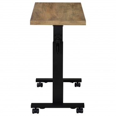 Transform your bedroom into a functional retreat with this height-adjustable C-table, designed specifically for use while reclining in bed. The 28-inch wide wood-inspired top offers ample space for working, dining, or reading. Featuring a smooth hand-crank mechanism, the table adjusts from 27 to 39 inches in height for personalized comfort. Its heavy-duty steel base, finished in a matte black powder coat, ensures durability and stability, making it the perfect bedside companion.