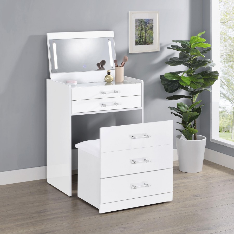 Danbury 3-drawer Makeup Vanity & Stool Set White High Gloss