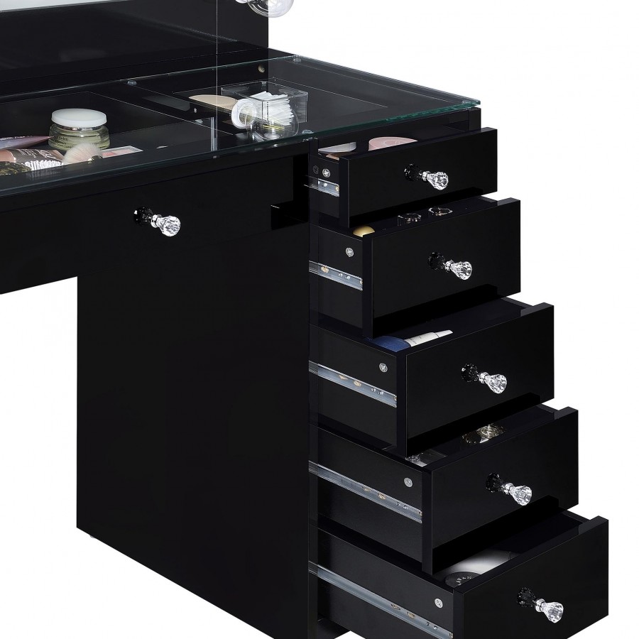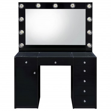 Acena 7-drawer Vanity Set with Lighting Black High Gloss