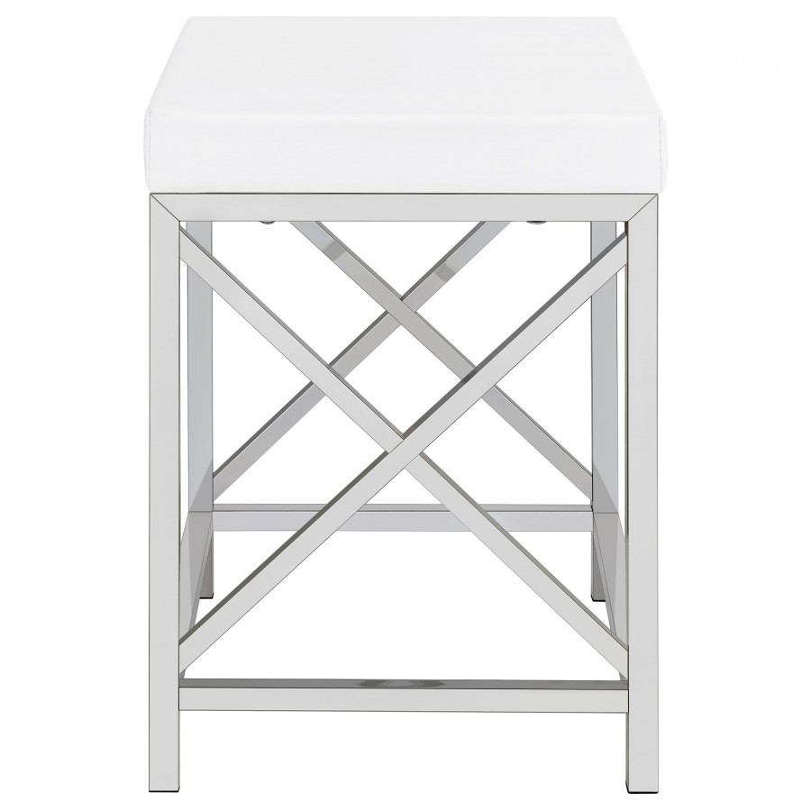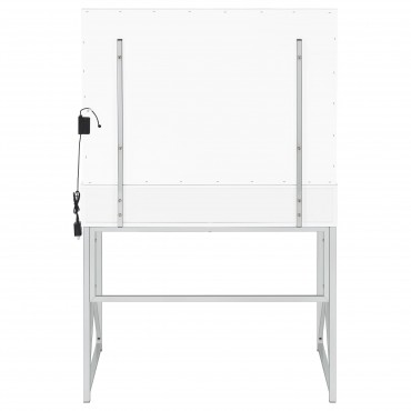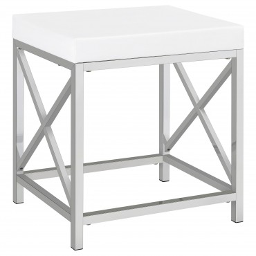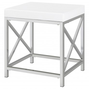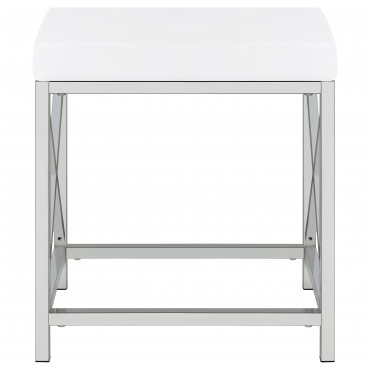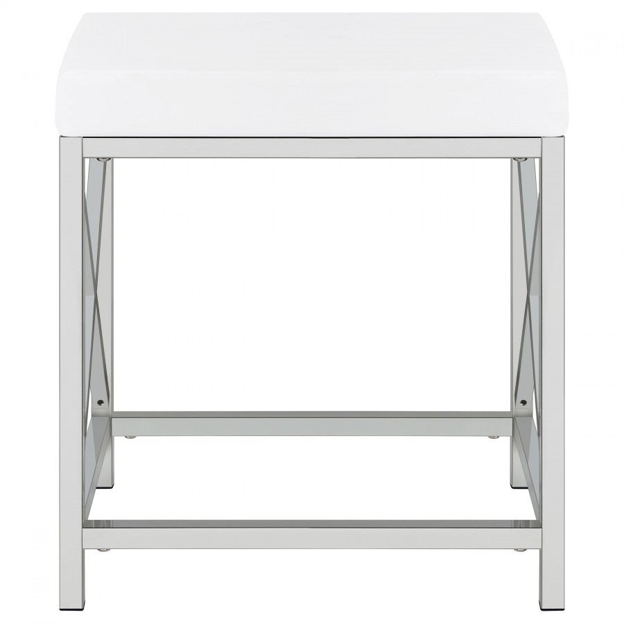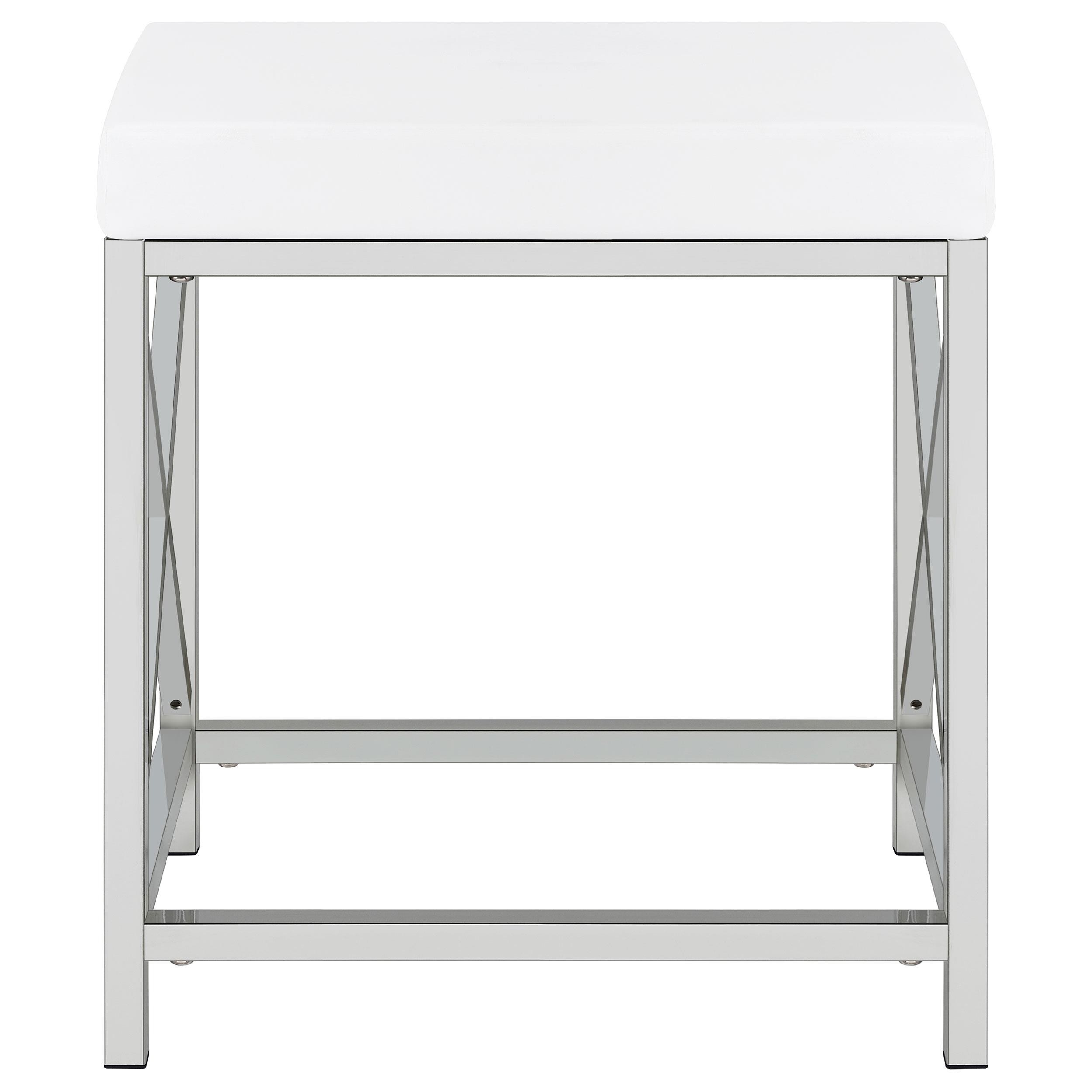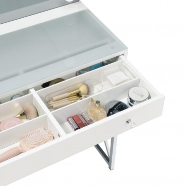 Elevate your morning rituals with a compact, contemporary vanity set, including table, mirror and stool. Perfect for makeup and hair, the vanity shows off a bright white finish with a large drawer for stashing your daily necessities. On top, a lighted mirror adds Hollywood glamour while providing bright illumination so you can see every detail as you get ready for everything from running errands to a girl's night out. The desk is accompanied by a backless stool, providing an easy spot to sit as you prepare for the day. The stool features a base with X-shaped braces to match the desk and includes a white faux leather seat with lovely padding that starts your day on the right foot.
