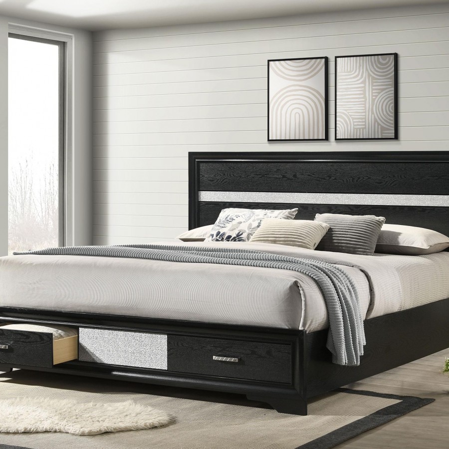 Miranda 51-inch Wood California King Storage Panel Bed Black
