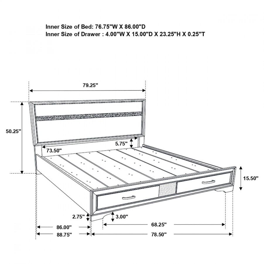 This alluring bed from the Miranda collection has both fashion and function. It features crisp lines and a headboard that's as simple as it is impressive. The footboard is built with two roomy drawers to hold extra sheets and blankets. The bed has an effortless timelessness and elegance. Add to the bedroom for a charming ambiance that's sure to please.