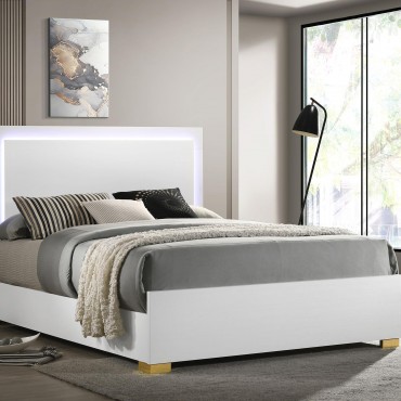 Marceline Wood Queen LED Panel Bed White
