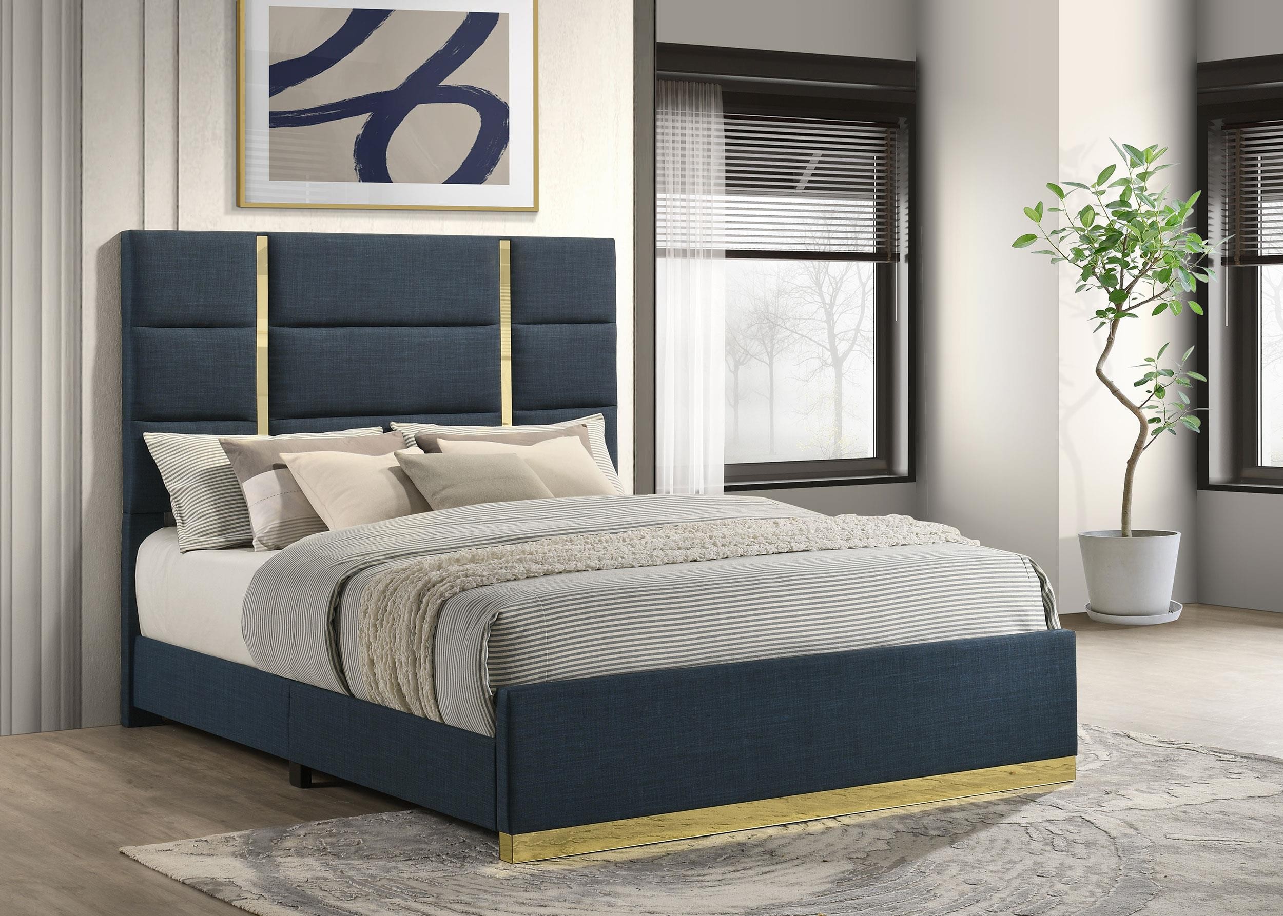 Ines 56-inch Fabric Upholstered Queen Panel Bed Navy