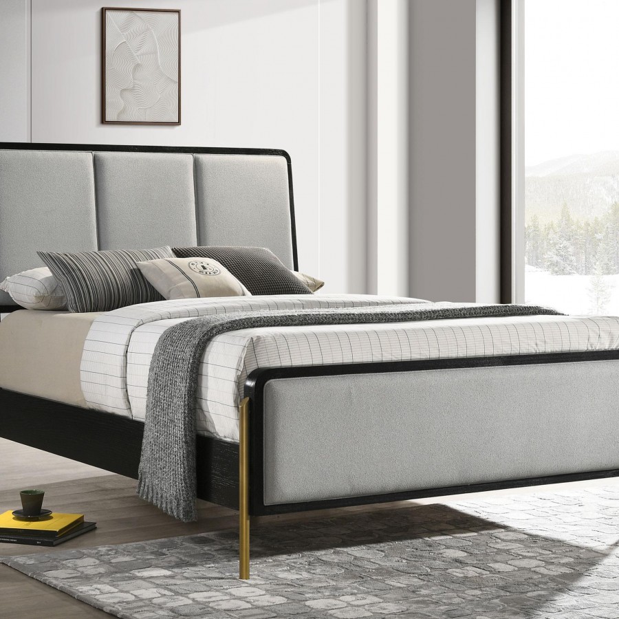 Arini Upholstered Eastern King Panel Bed Black and Grey