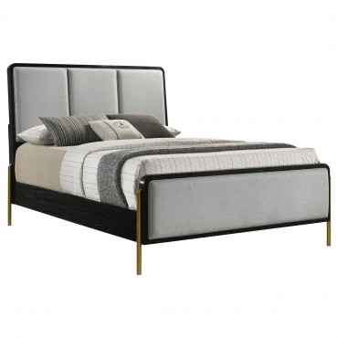 Arini Upholstered Queen Panel Bed Black and Grey