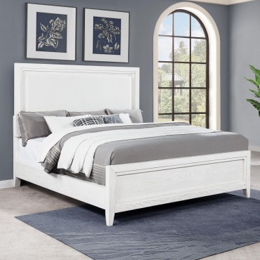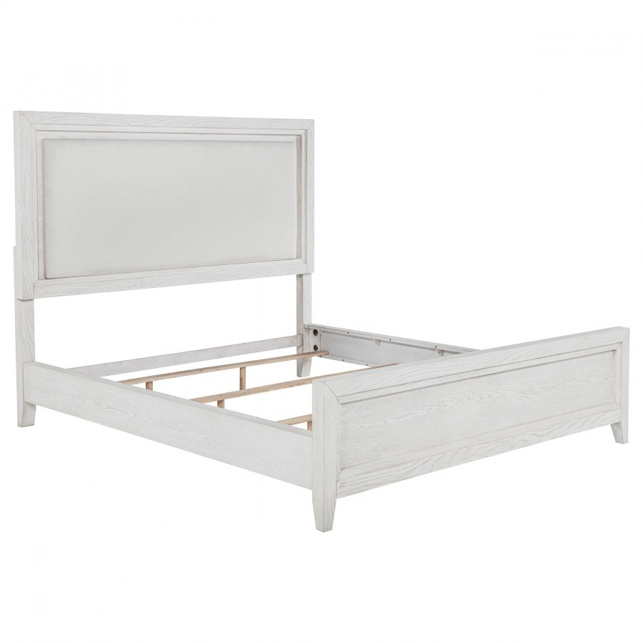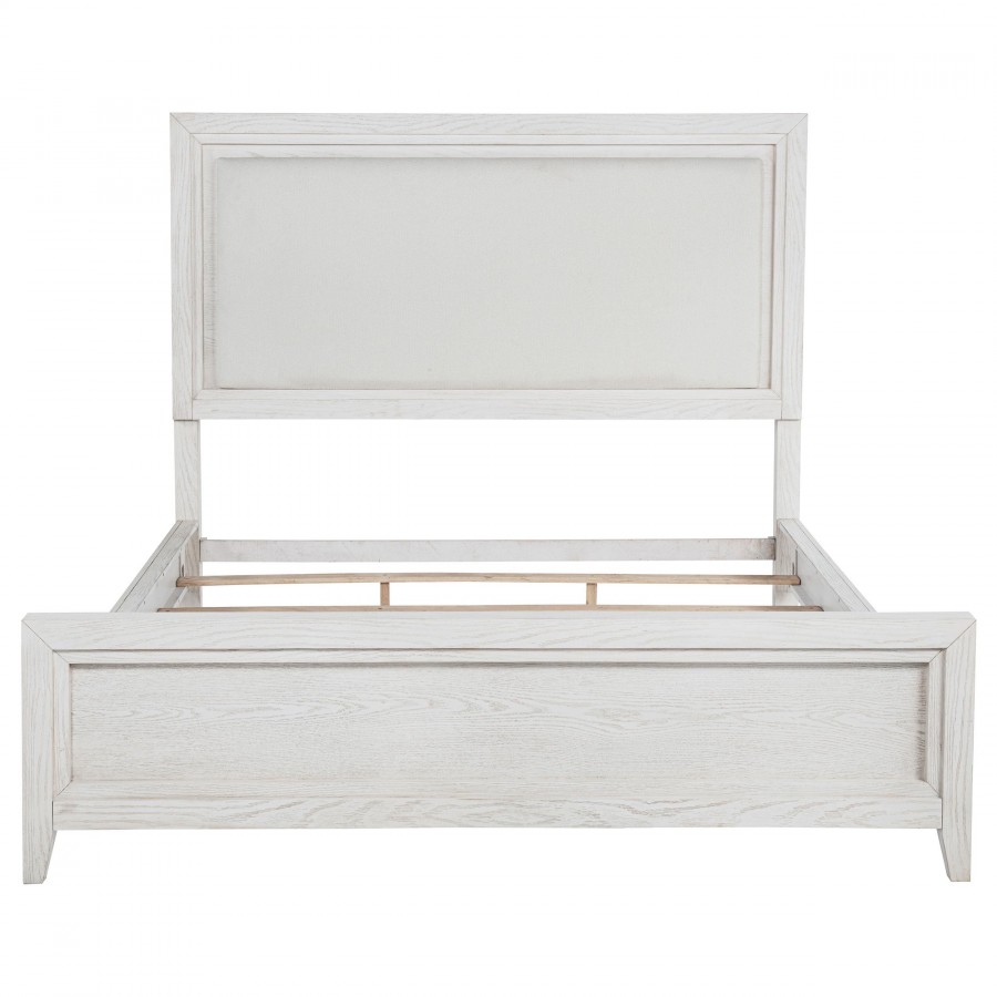 Marielle Eastern King Upholstered Panel Bed Distressed White