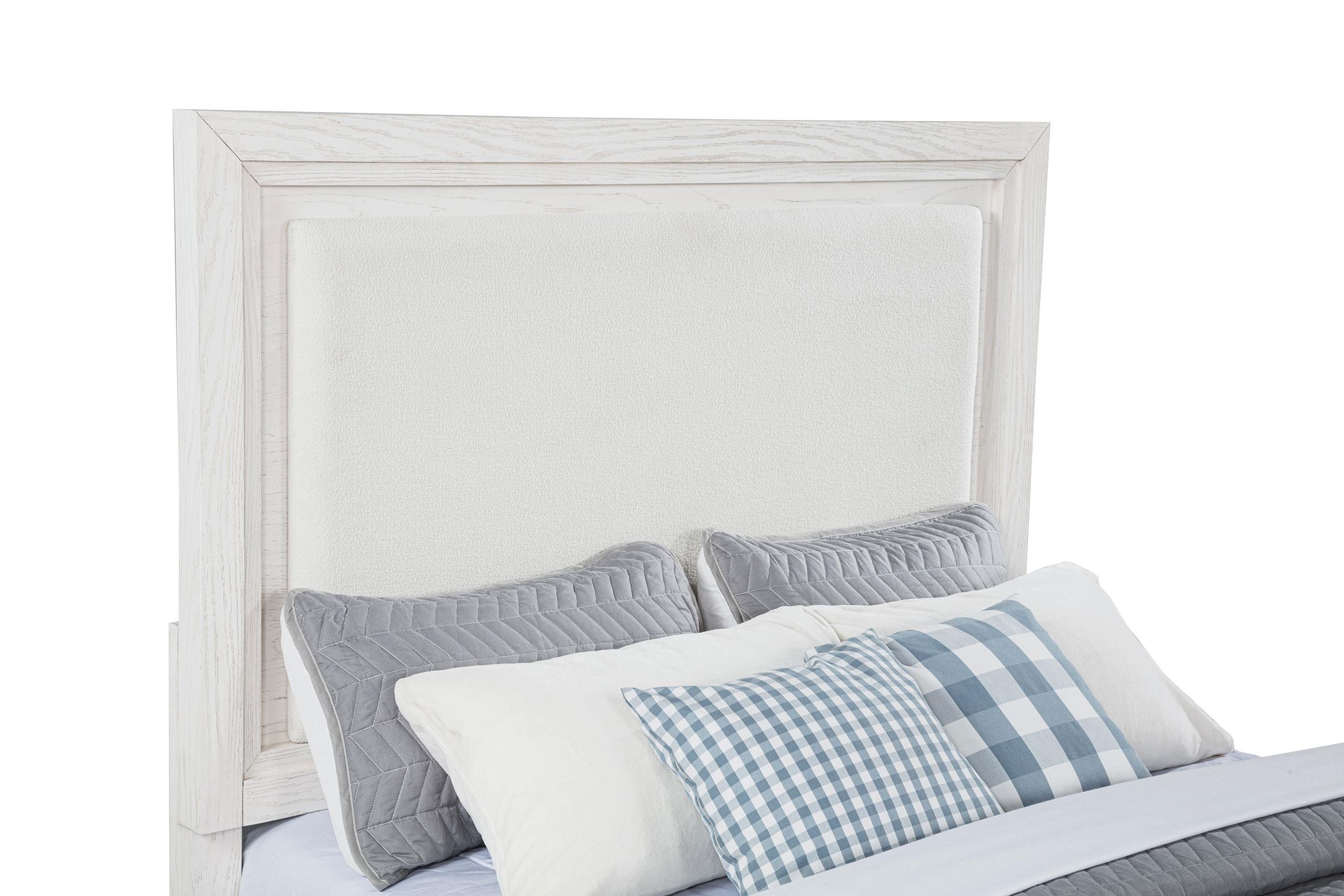 Marielle Queen Upholstered Panel Bed Distressed White