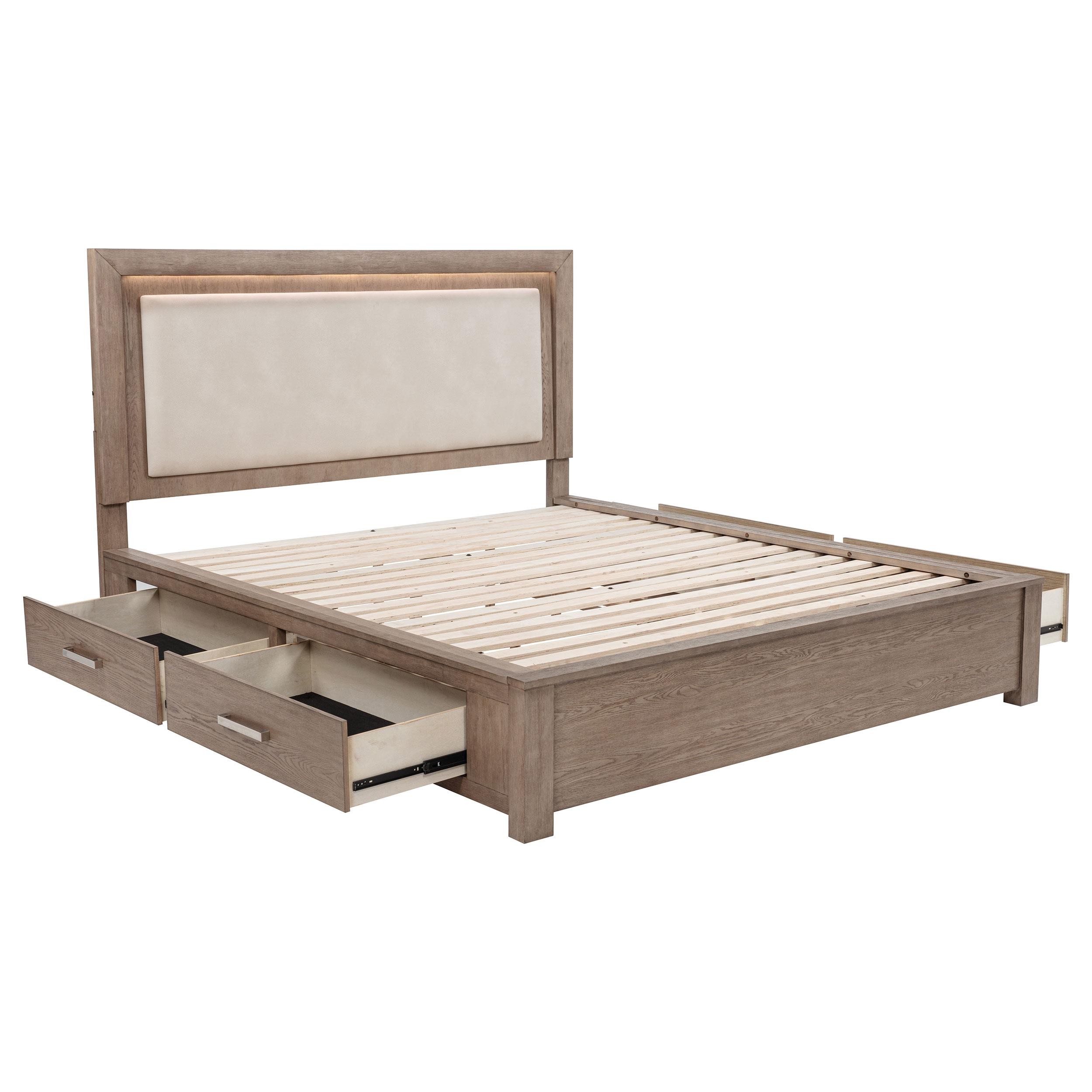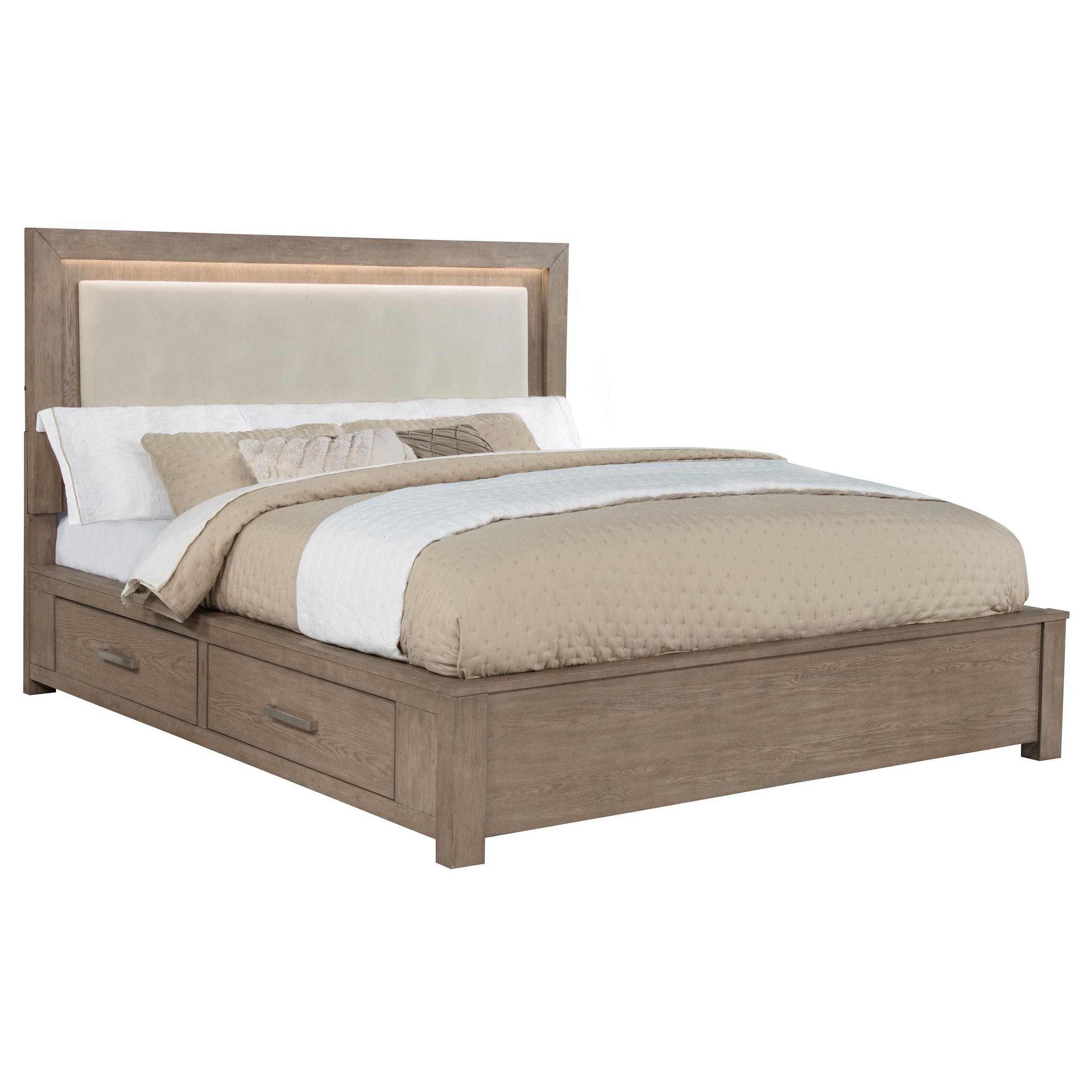 Kenora 56-inch Eastern King LED Storage Bed Barley Brown