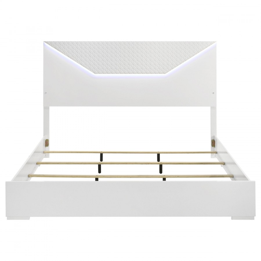 Ives Eastern King Panel Bed LED Headboard White High Gloss