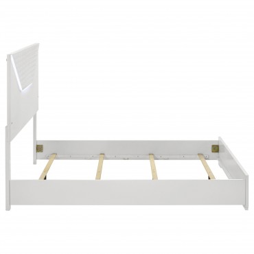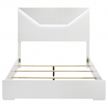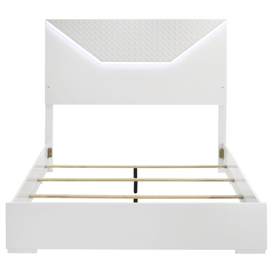 Ives Queen Panel Bed LED Headboard White High Gloss
