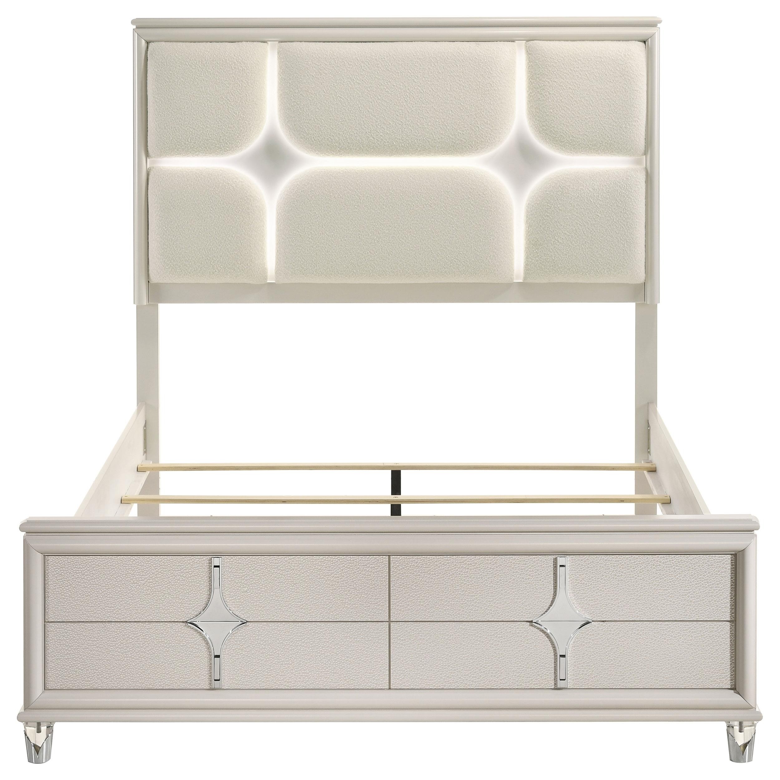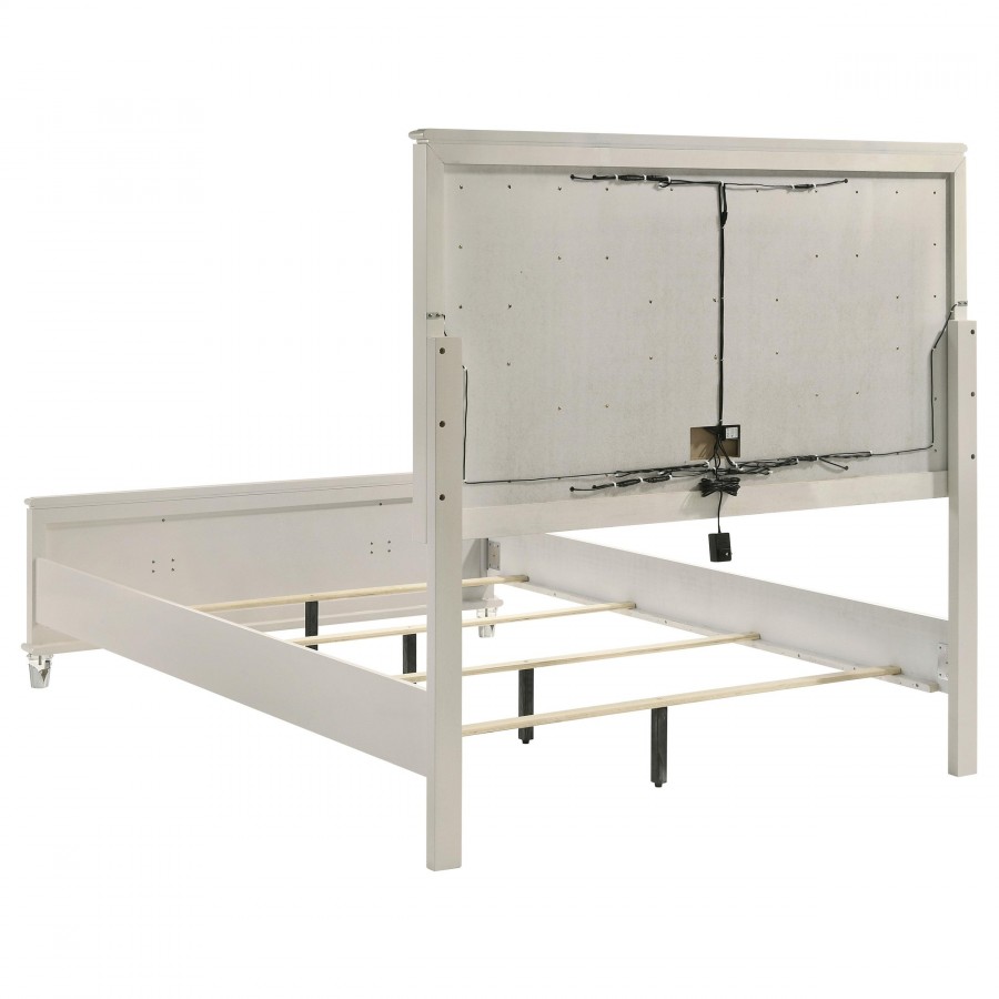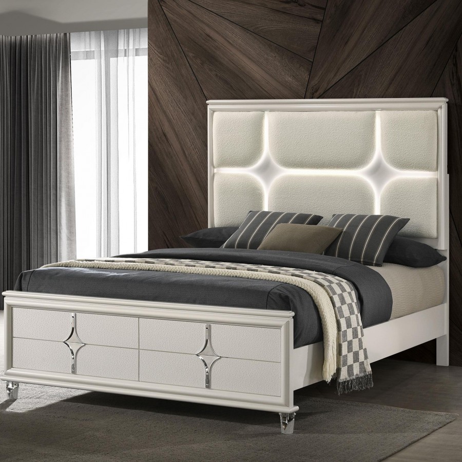 Olivia Queen Panel Bed LED Headboard Pearl White