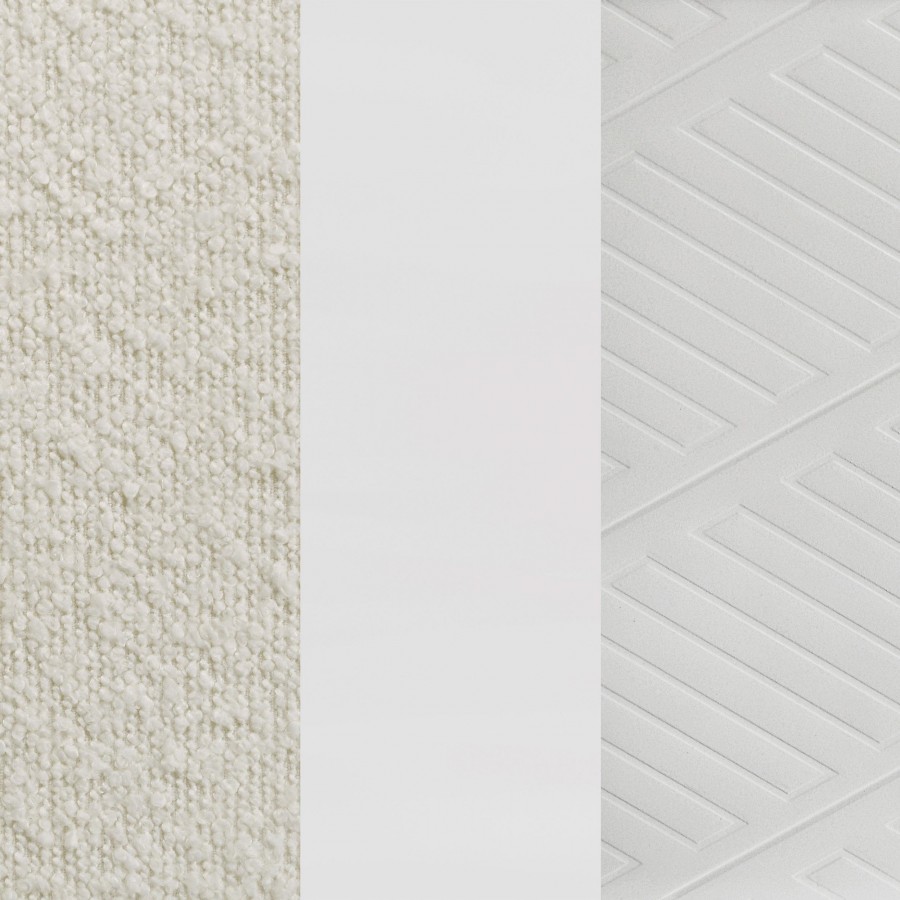 Indulge in the luxurious elegance of this modern Italian-designed bed, perfect for creating the opulent bedroom you deserve. The striking, clean lines and picture framed recessed panels with embossed herringbone graphic patterns exude sophistication. Accented with mirror framing and acrylic legs, the bed also features polished chrome metal hardware and touch LED lights in the 3-dimensional headboard, upholstered in off-white boucle fabric. Crafted from rubberwood, MDF, foam, and mirror, this bed offers both style and durability. Available in queen, eastern king, and California king sizes to suit your preferences.