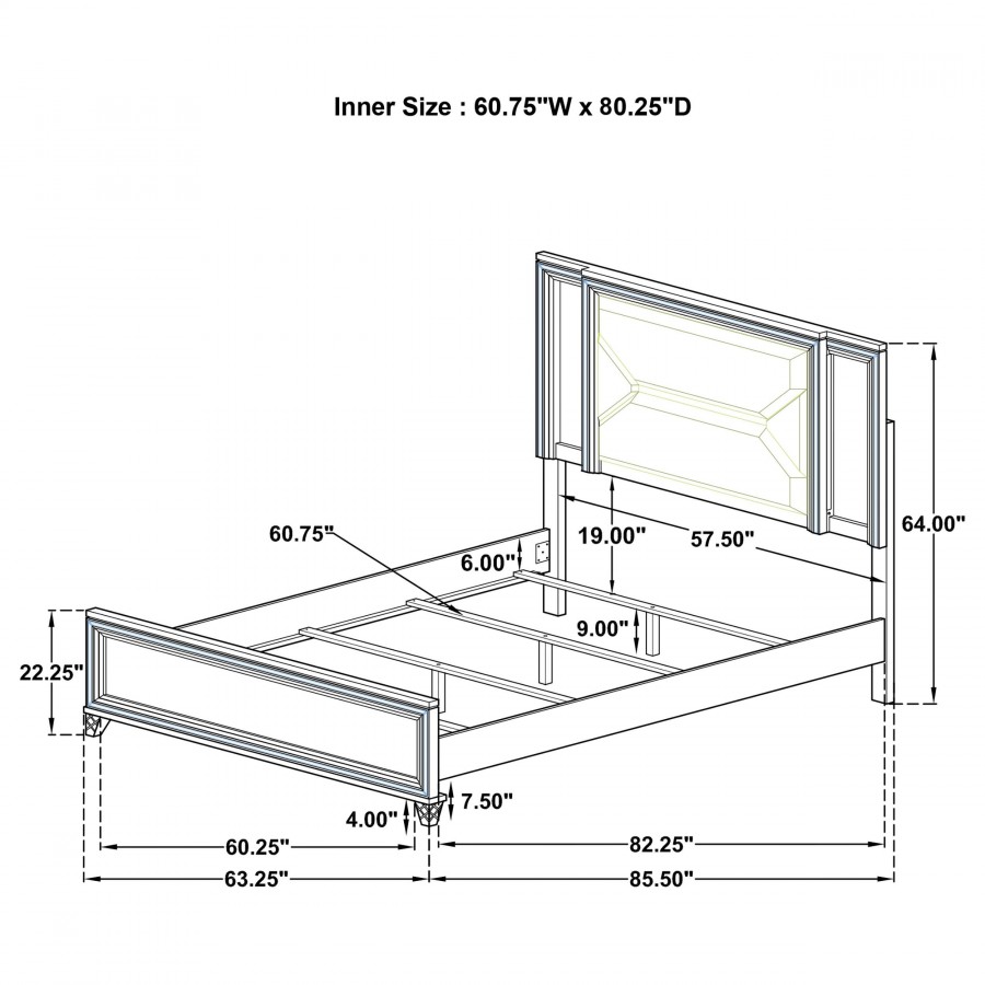 Marmore 64-inch Queen Panel Bed LED Headboard White
