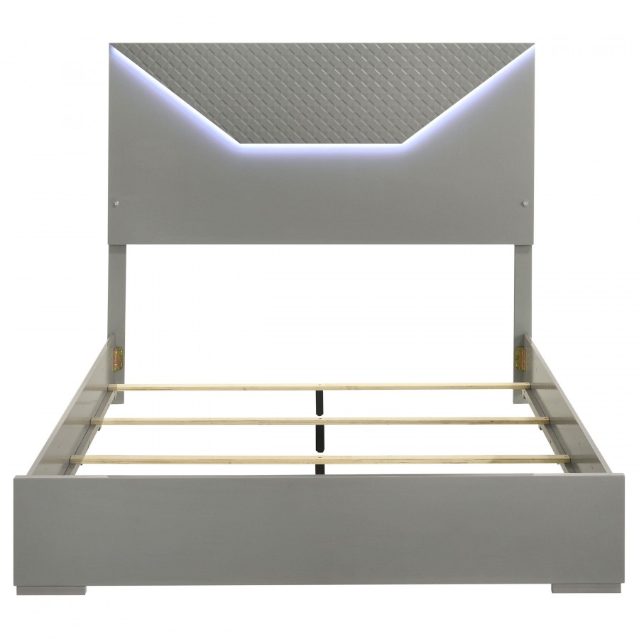 Ives Queen Panel Bed LED Headboard Grey High Gloss