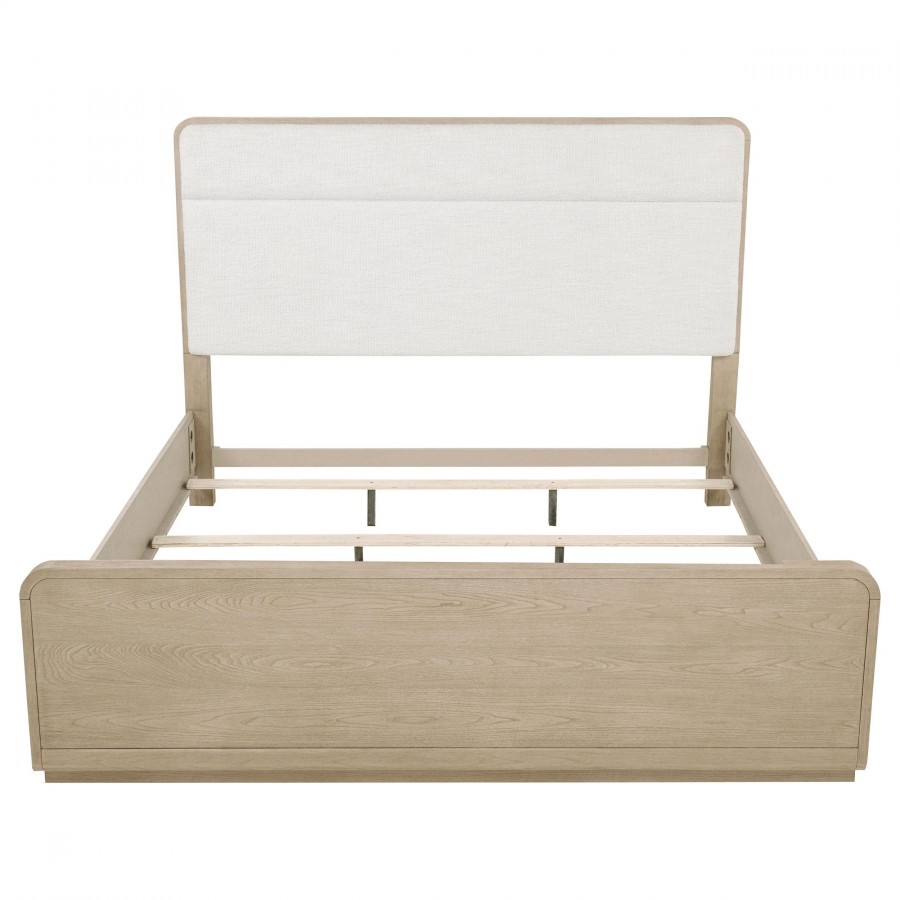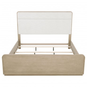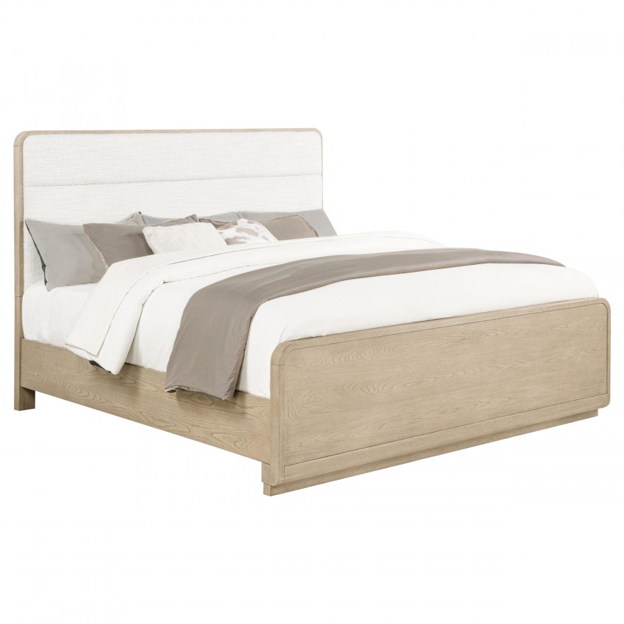 This contemporary panel bed redefines bedroom style with its light elm finish and soft, rounded corners that elevate modern design. The solid wood frame ensures reliable durability, while the cream boucle upholstered headboard adds a plush, teddy bear-soft texture for ultimate relaxation. Designed with understated elegance and practical craftsmanship, this bed is perfect for any home seeking a blend of contemporary aesthetic and lasting quality.