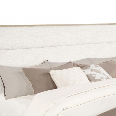 This contemporary panel bed redefines bedroom style with its light elm finish and soft, rounded corners that elevate modern design. The solid wood frame ensures reliable durability, while the cream boucle upholstered headboard adds a plush, teddy bear-soft texture for ultimate relaxation. Designed with understated elegance and practical craftsmanship, this bed is perfect for any home seeking a blend of contemporary aesthetic and lasting quality.