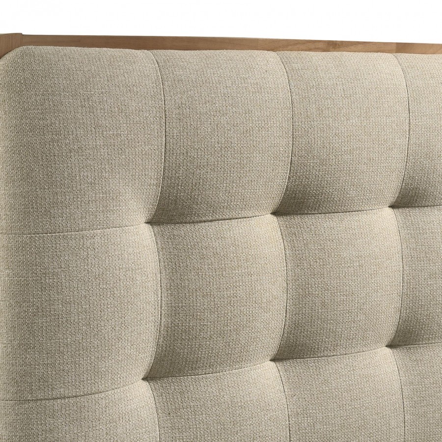 Bring countryside charm to your bedroom with this mid-century-inspired bed, expertly crafted from rubberwood, engineered wood, and ash veneer for durability and style. The upholstered headboard features thick padding and square tufting for a touch of elegance and comfort, while the sleek, low-profile footboard completes the refined silhouette. Rounded corners and tapered legs highlight the retro-modern design, and its elevated frame adds a clean, airy look. Perfect for creating a serene and stylish bedroom retreat.